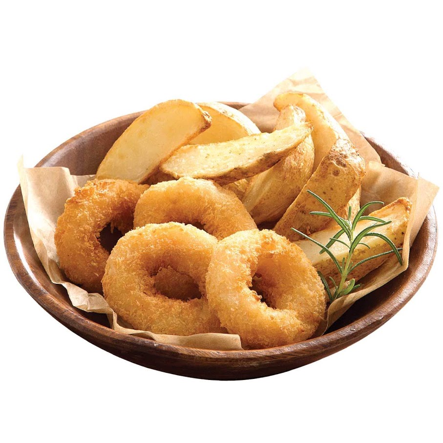 탱글탱글한 새우살이 가득한 새우링과 노릇하게 구워낸 웨지감자